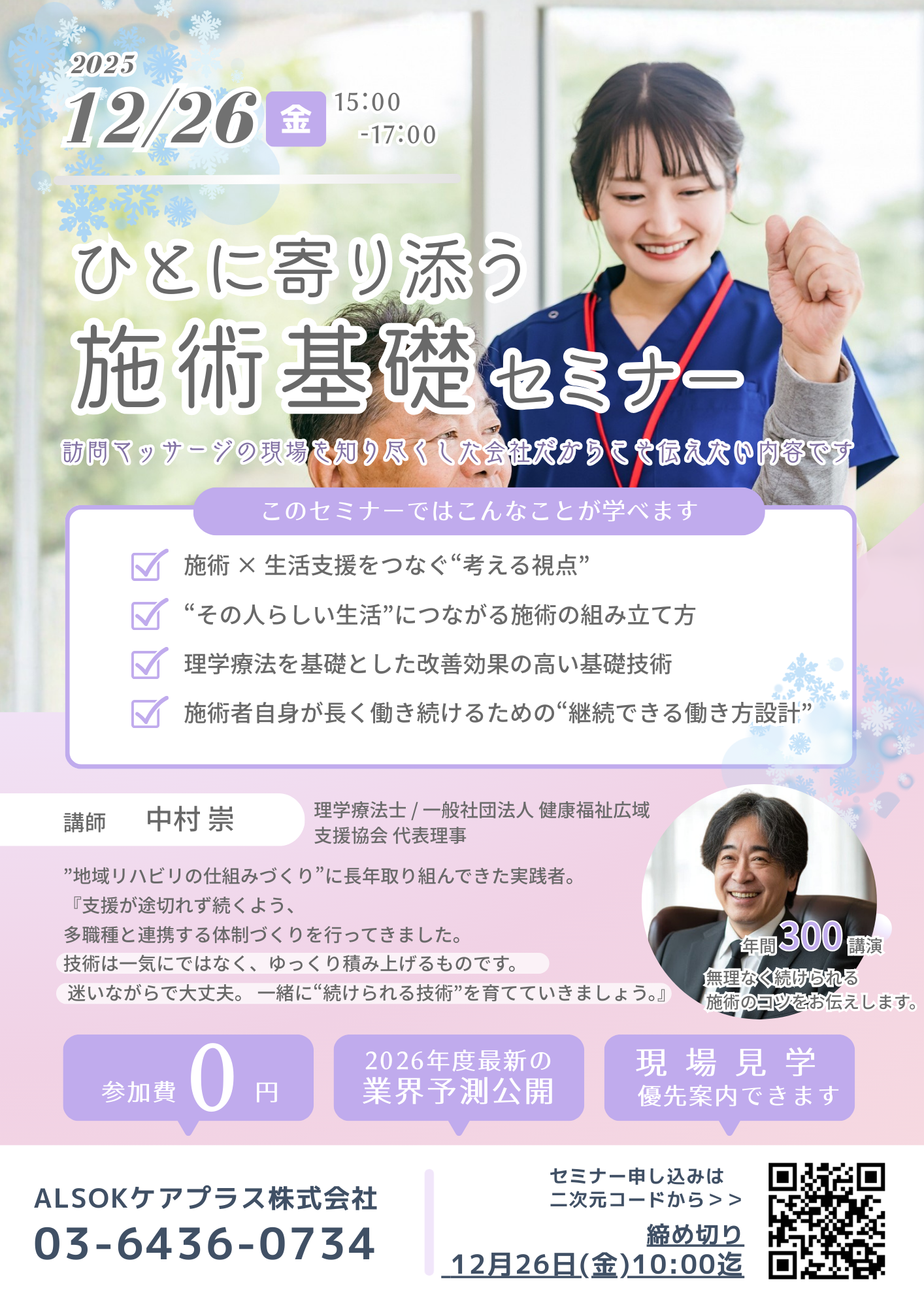 【12/26無料セミナー開催】ひとに寄り添う施術基礎セミナー