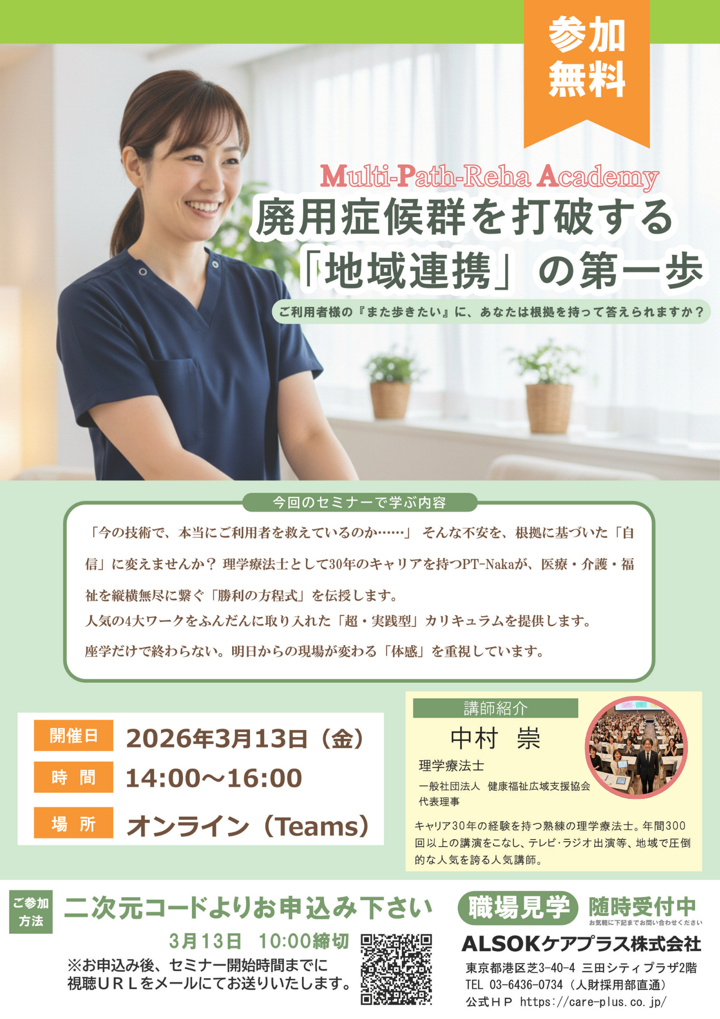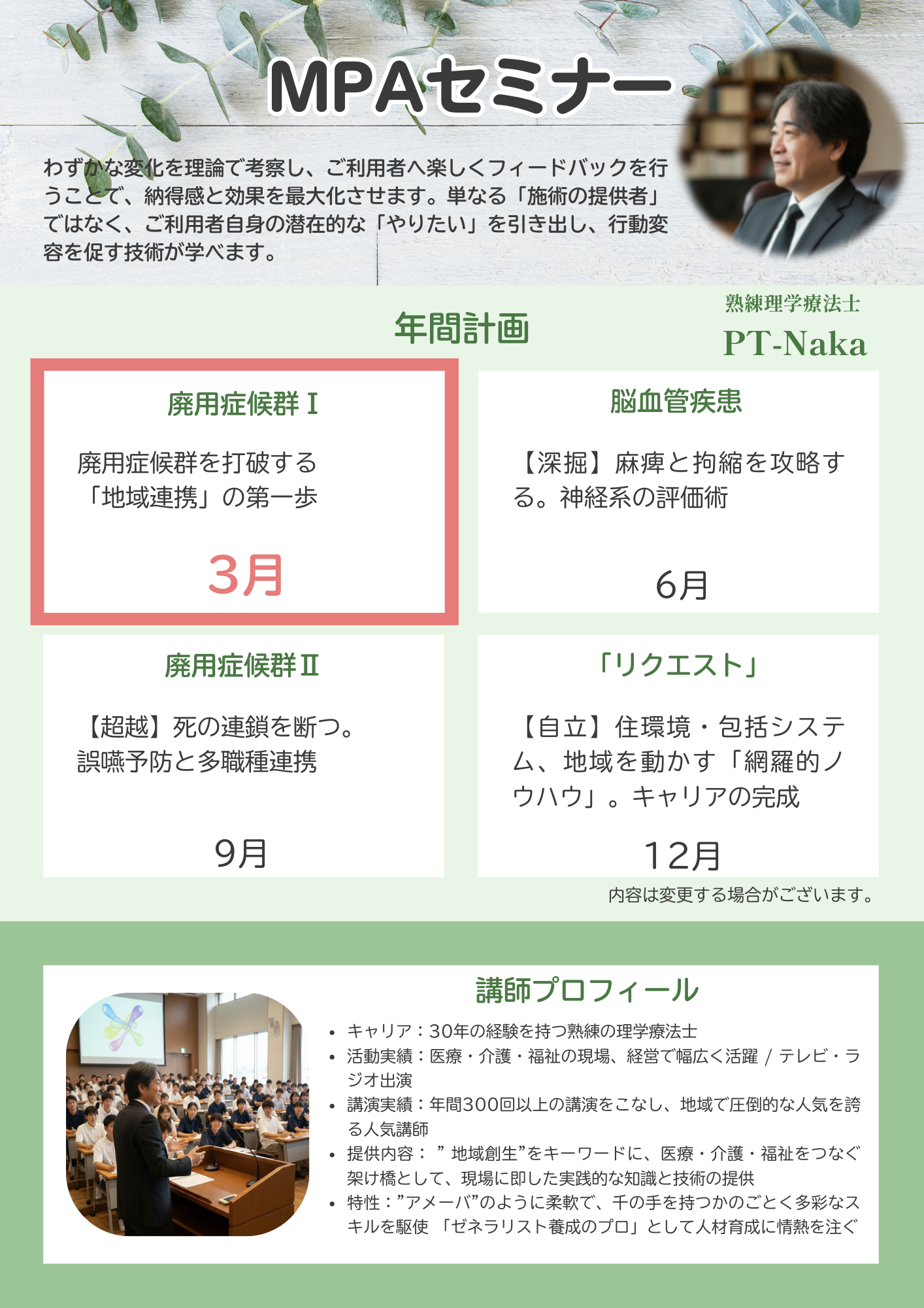 【3/13オンライン開催】MPAセミナー『廃用症候群を打破する「地域連携の第一歩」』